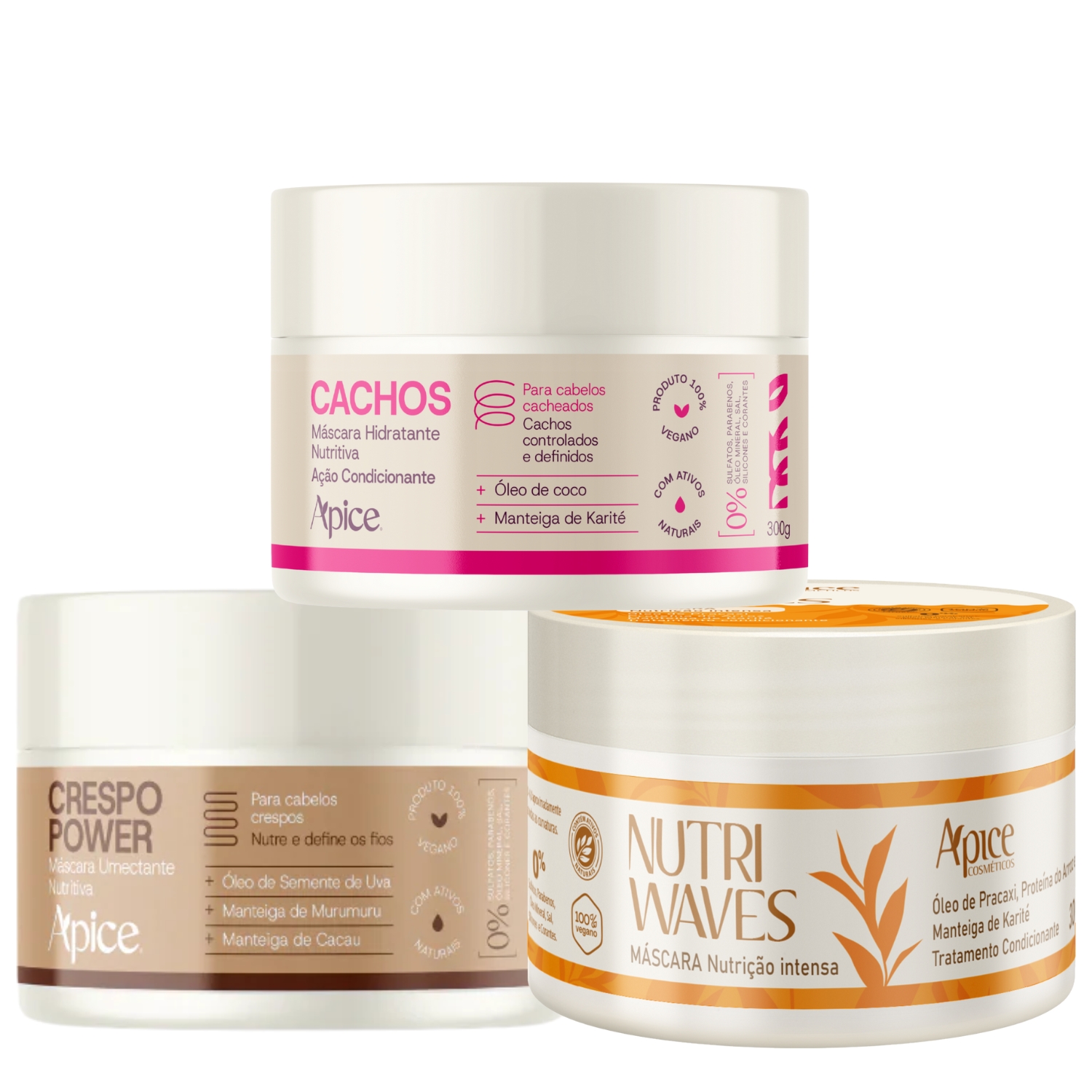 Cronograma Capilar Completo Apice – Nutri Waves, Cachos Essence e Crespo Power