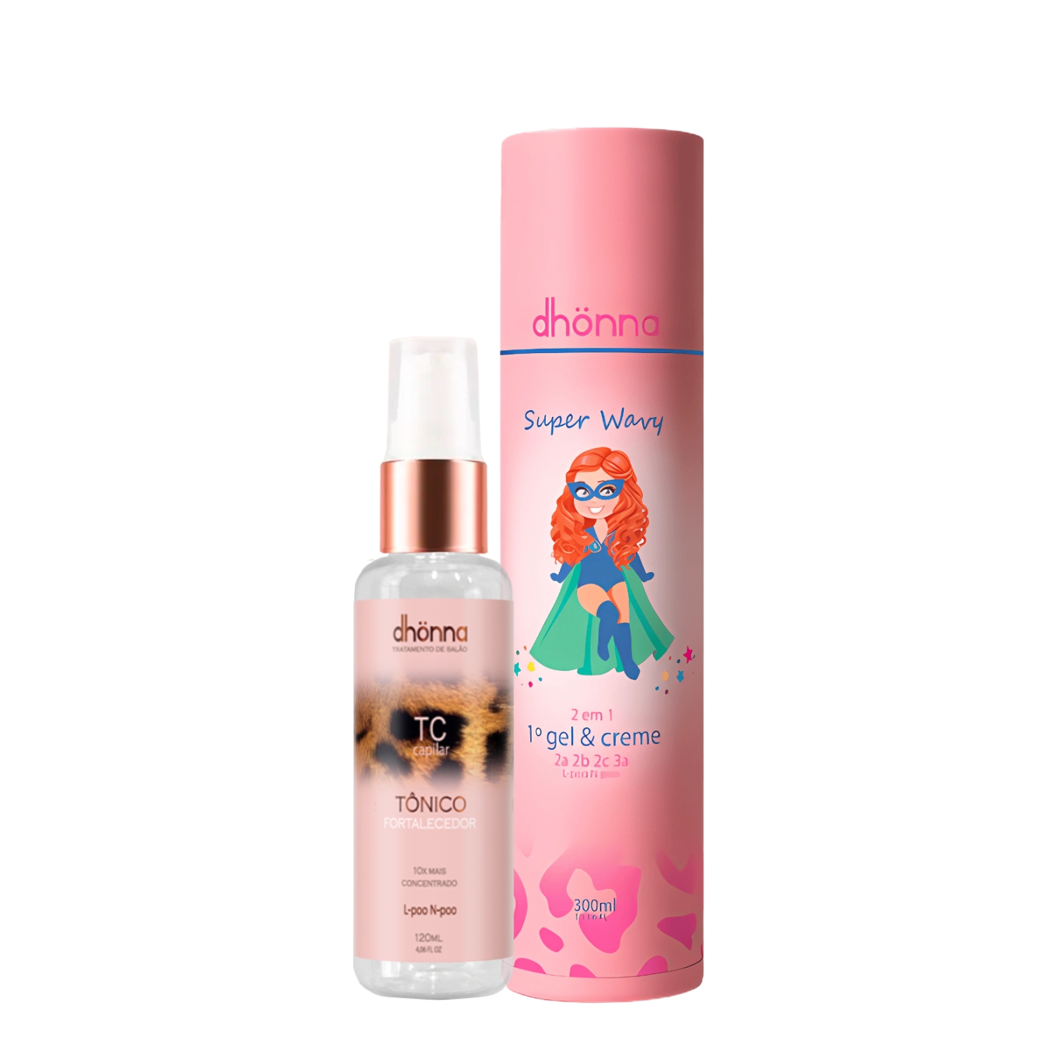 Unindo o Gel & Creme Super Wavy, que proporciona definição, brilho e maciez, ao Tônico Fortalecedor Dhonna, que fortalece a raiz e estimula o crescimento, o kit garante fios mais saudáveis, resistentes e com movimento natural.