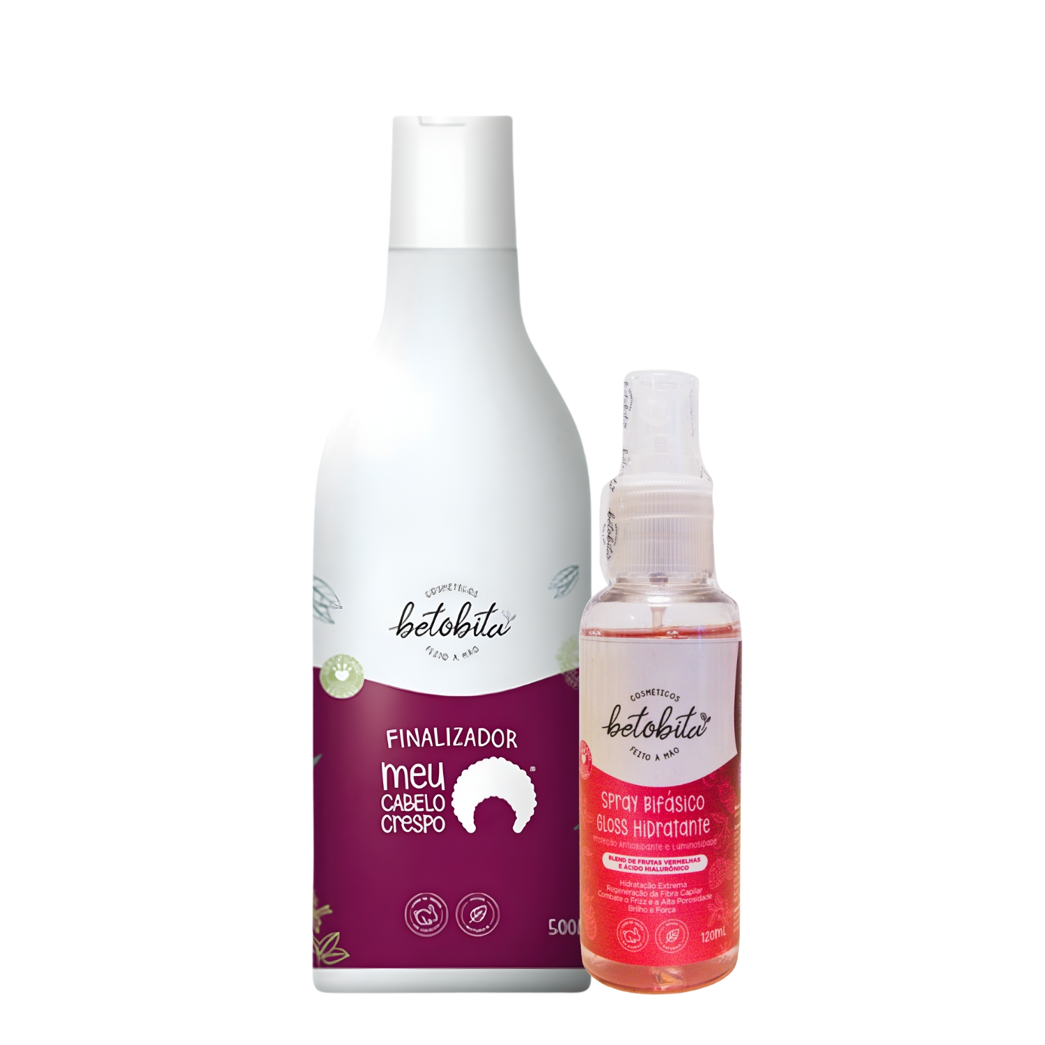 Kit Betobita Meu Cabelo Crespo – Creme Finalizador + Spray Bifásico Gloss