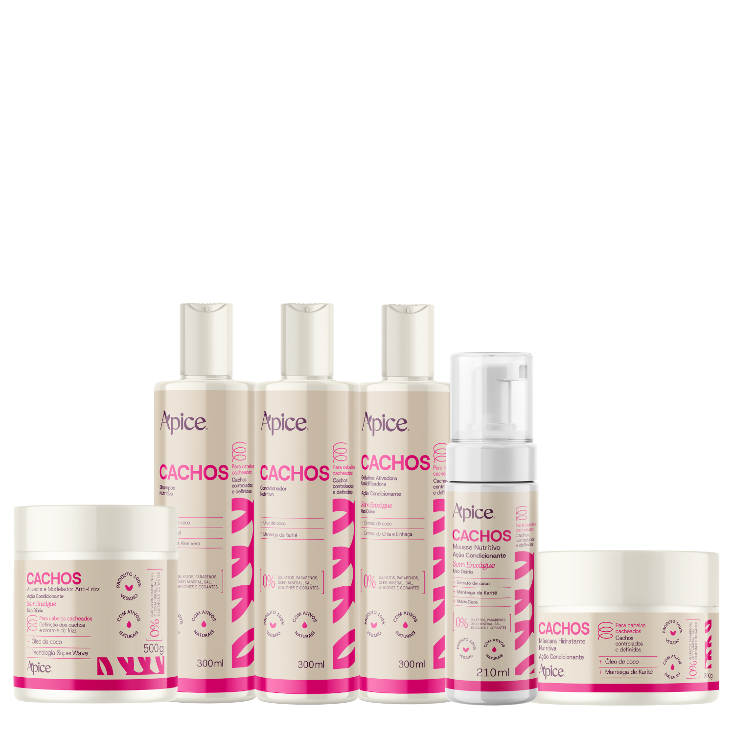Kit Cachos Apice Essence Nova Fragrancia – Shampoo + Condicionador + Máscara + Gelatina + Ativador + Mousse