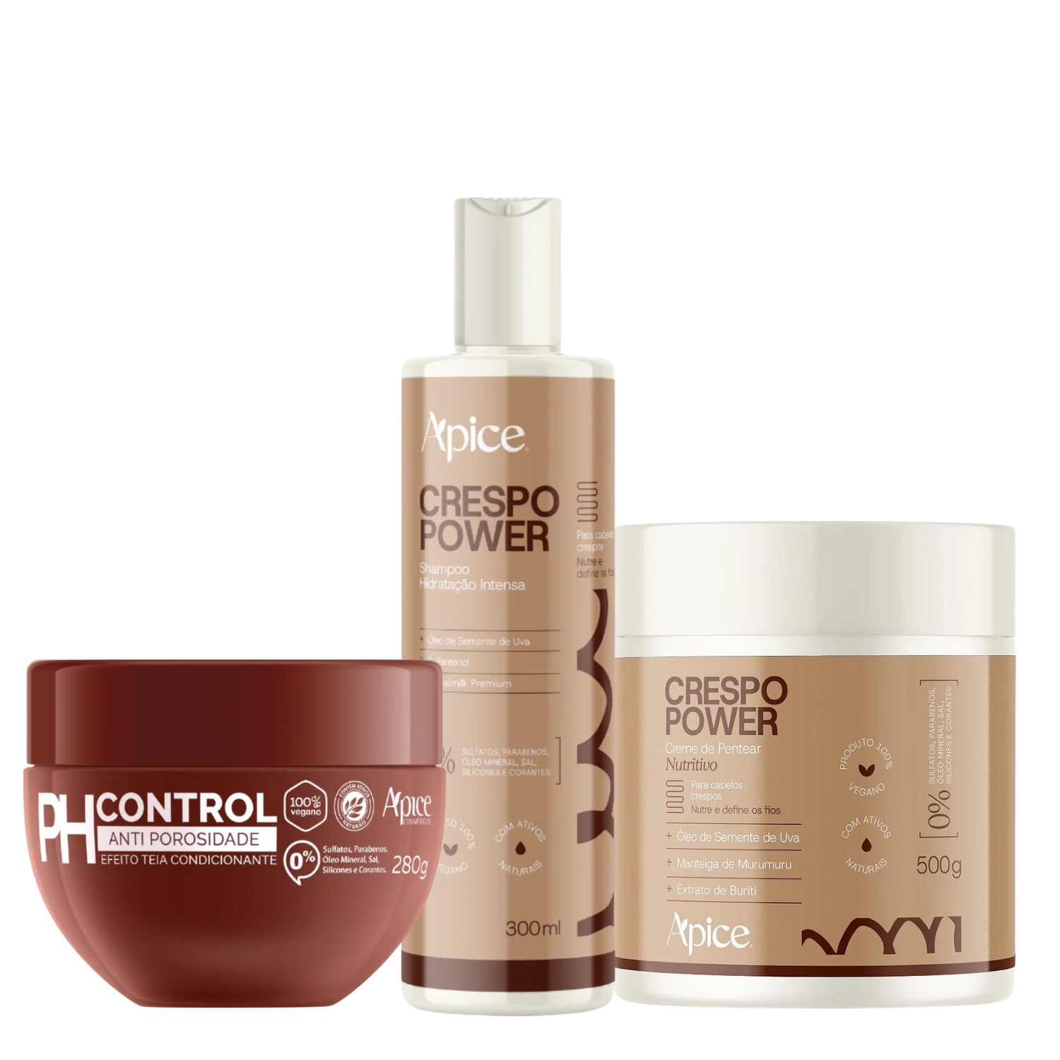 kit crespo power - máscara acidificante ph control - shampoo crespo power - creme de pentear crespo power - tratamento para cabelos crespos - hidratação profunda cabelos - reconstrução capilar - controle de frizz - cabelos porosos - nutrição capilar - comprar kit crespo power - comprar máscara acidificante - melhor kit para cabelo crespo - linha crespo power apice - kit hidratação e definição - tratamento profissional capilar - produtos para cabelo crespo - cabelo definido e hidratado - linha apice cosméticos - tratamento completo para cabelos crespos