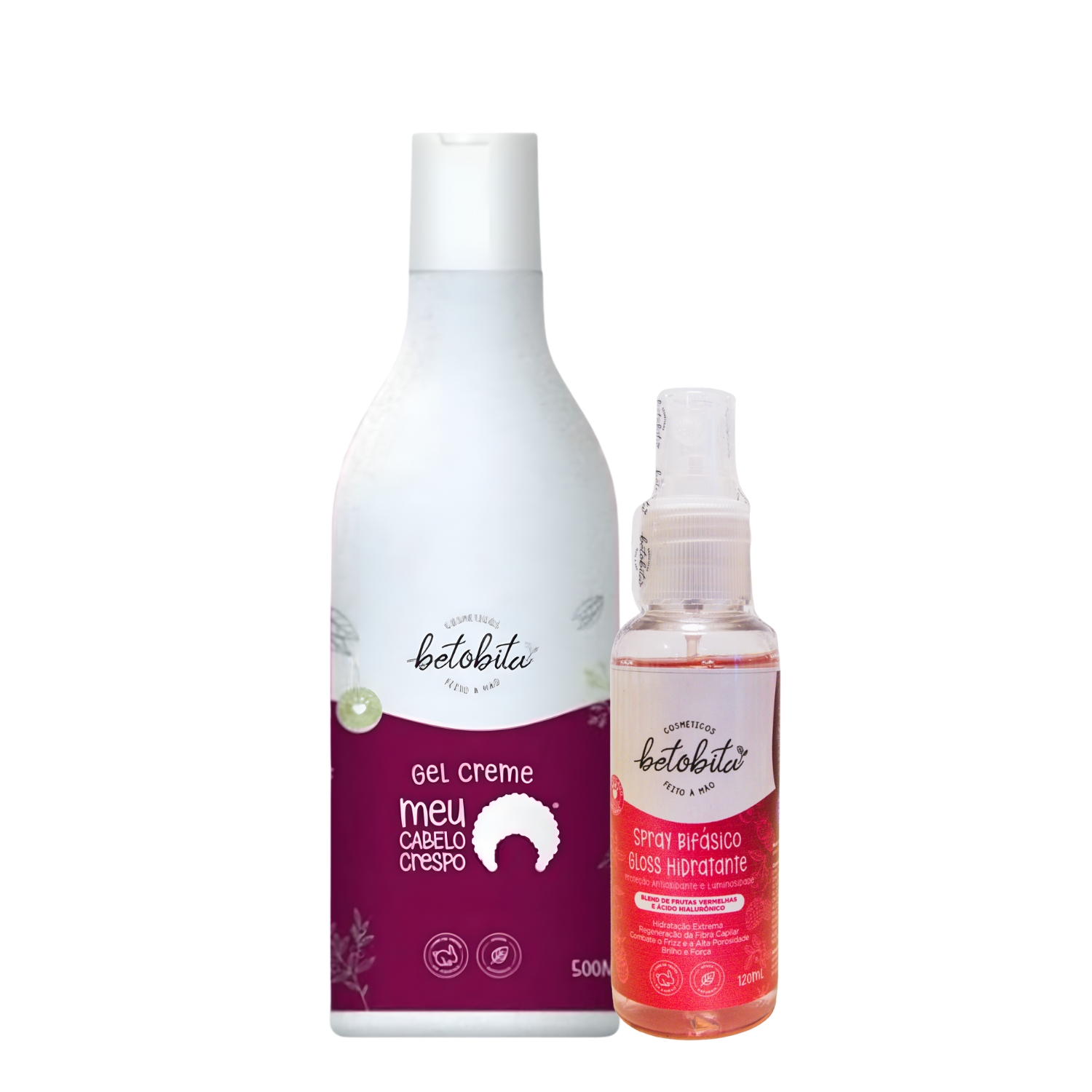 O Kit BetoBita foi pensado especialmente para mulheres com cabelos cacheados e crespos que desejam manter a beleza natural dos fios no day after, sem perder a praticidade. Combinando o Gel Creme Meu Cabelo Crespo 500ml e o Spray Bifásico Gloss Hidratante 120ml, você garante modelagem leve, frizz controlado, hidratação instantânea e brilho intenso em segundos.