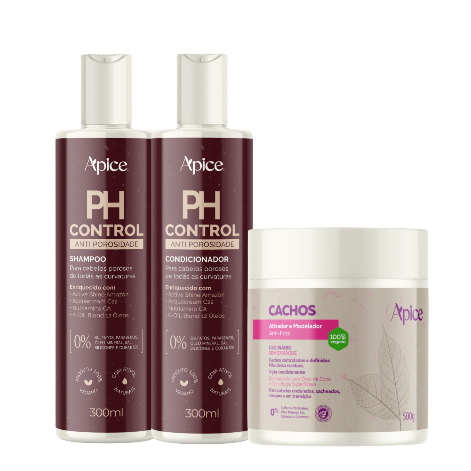 Recupere o equilíbrio dos fios e conquiste cachos saudáveis, definidos e livres de frizz com o Kit pH Control + Ativador de Cachos Ápice Cosméticos.